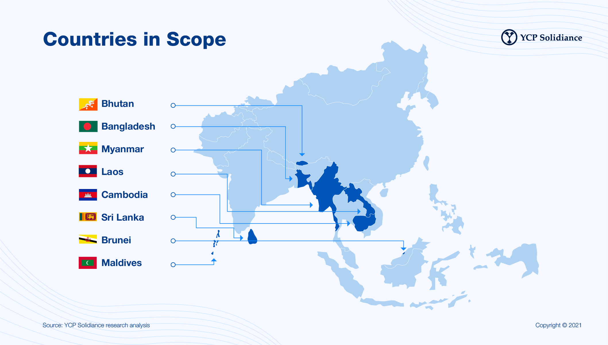 The client asked YCP Solidiance for support with market entry and expansion for eight countries in the Southeast and South Asian regions.