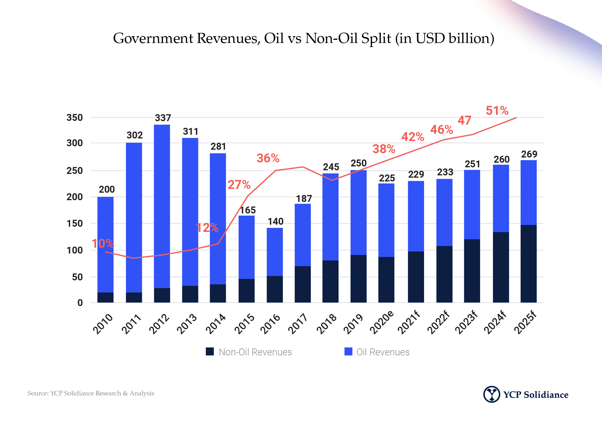 - Saudi Vision 2030 – To ensure that economic diversification takes place, the government has firmly implemented Saudi Vision 2030 as a strategic framework. Primarily supported by the Public Investment Fund (PIF), projects developed within the private sector are expected to spearhead diversification efforts.