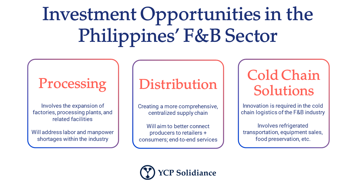 Due to how diverse the Philippine F&B industry and its sub-sectors are, there exist several investment opportunities that interested parties can capitalize on.