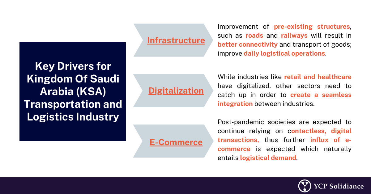 While the growth of KSA’s logistics industry can be attributed to an increase of investment from a plethora of sources, the role of the e-commerce industry and its reliance on logistical operations will also play a vital part. For instance, due to increased e-commerce activity in the KSA, the country’s e-commerce industry registered an improved CAGR of 24% for 2020 to 2022, which is 10% higher than the pre-pandemic forecast. This growth is expected to continue until 2025 wherein the industry’s total value is expected to reach 50 billion USD. Given that a post-pandemic society is expected to continue to rely on digital spaces and online services, such a trend benefits the KSA e-commerce industry as well as the logistics industry.