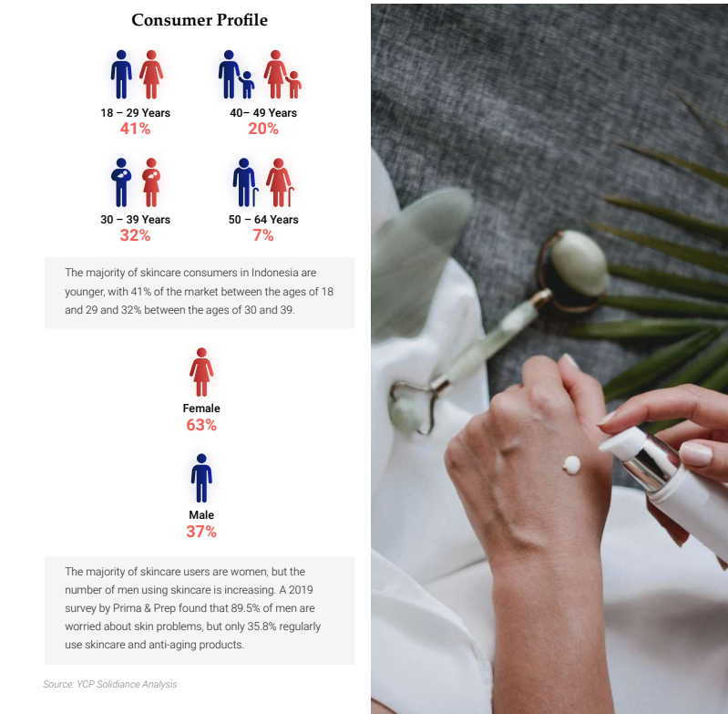 The skincare market in Indonesia is a sizable segment that accounts for approximately 30% of the country’s beauty industry. Skincare market penetration in Indonesia is driven by various factors, such as changing beauty trends, growing awareness of skincare benefits, and improved purchasing power.