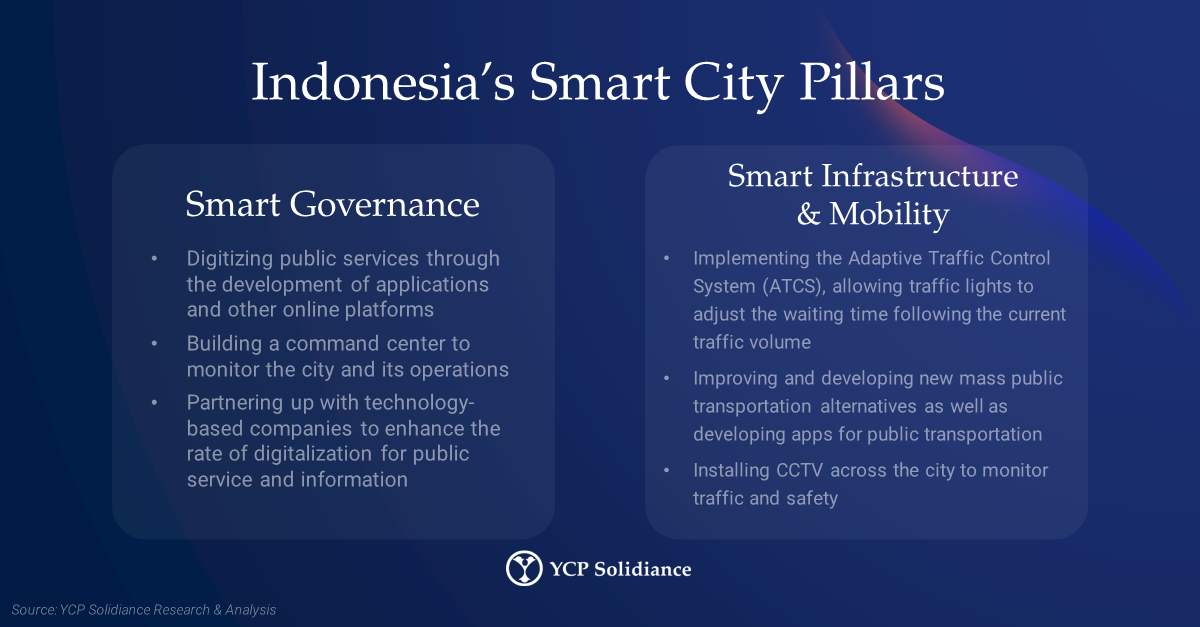 The YCP Solidiance publication Can Indonesia Achieve ‘100 Smart Cities’ by 2045? Accelerating Implementation Through Business Collaboration discusses the pillars of smart city creation in Indonesia, emphasizing the pillars of smart governance and infrastructure as those particularly in need of collaborators for connectivity: