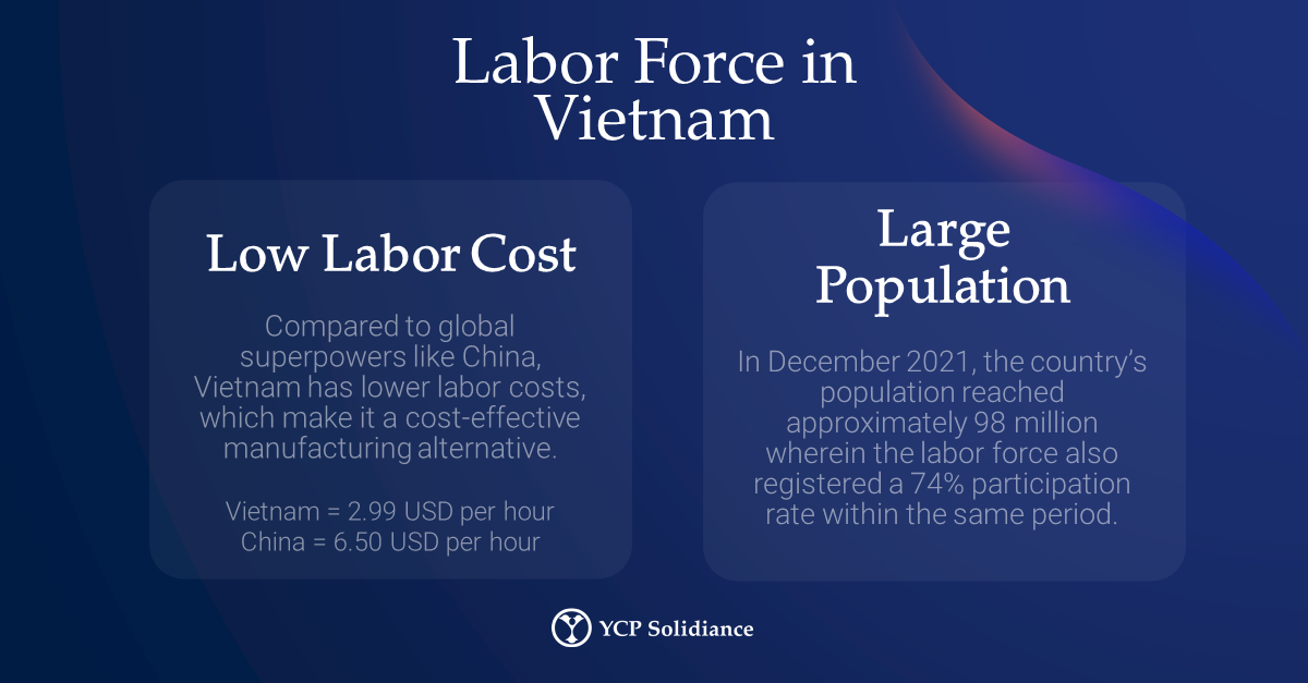 While Vietnam is smaller in comparison to global manufacturing superpowers like China, the manufacturing industry has still managed to succeed due to several factors, such as low, competitive labor costs, and potential low-skilled and mid-skilled additions to the labor market.