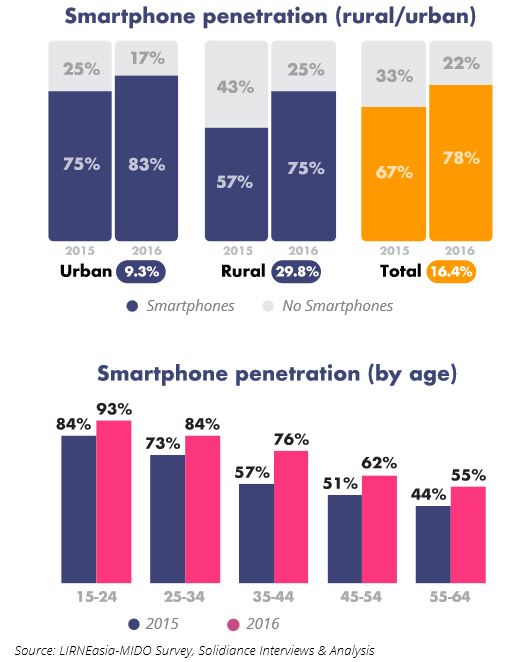 Smartphone will play an important role in driving Myanmar's digital economy forward, far surpassing the importance of any other electronic devices. In the current early stage of Myanmar e-commerce industry, 85% of the traffic comes from smartphones. Smartphones easily dominate the Burmese market as many of its product from ranging brands come with an attractive price. Therefore, its rise can be seen in the urban areas as well as the rural areas.