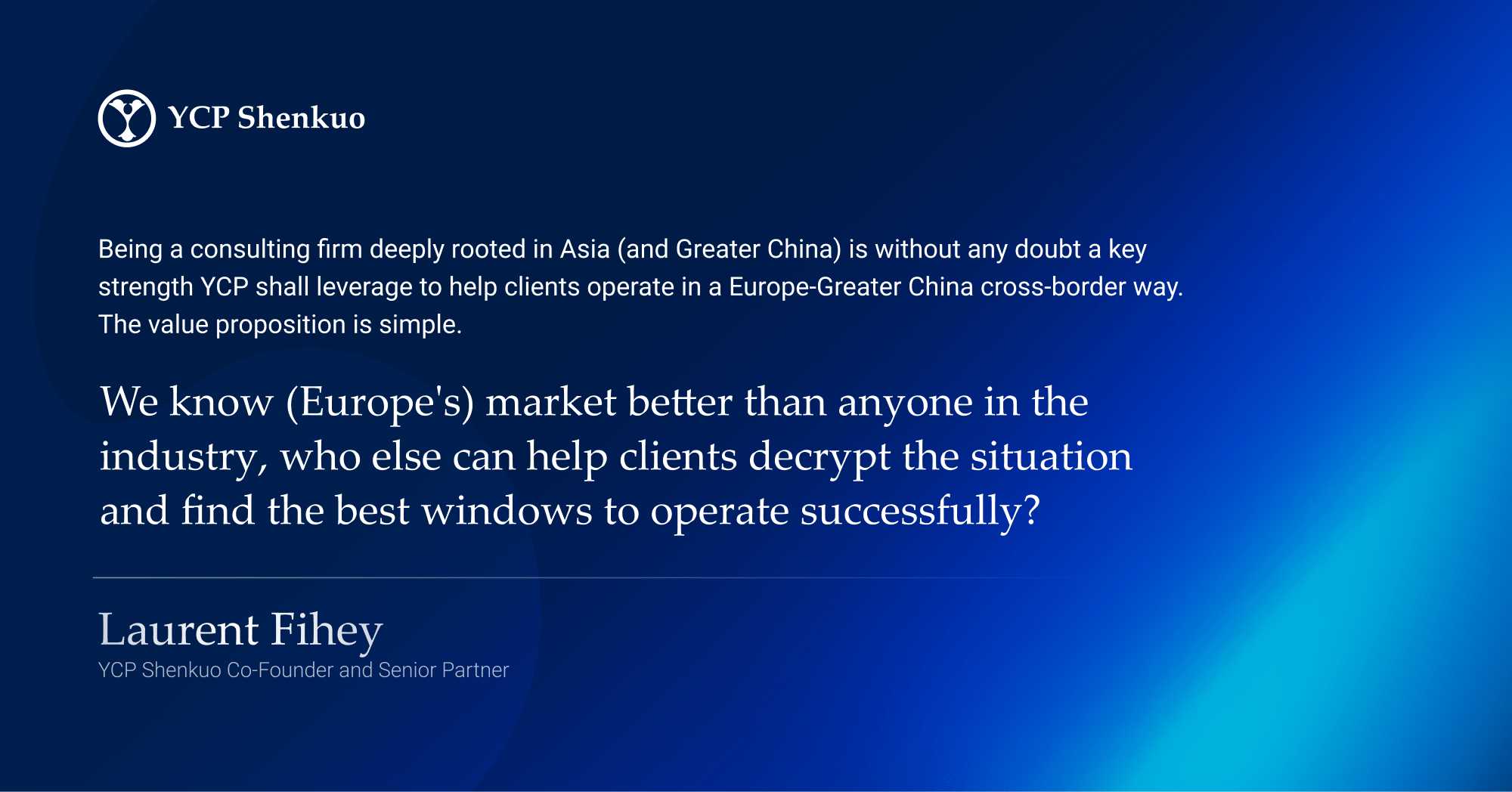 Being a consulting firm deeply rooted in Asia, particularly in Greater China, is without any doubt, a key strength that YCP can leverage to transcend borders across Europe and Greater China. YCP’s strategic position and deep understanding of the market presents a unique value proposition to help businesses successfully navigate the situation and find the best windows to operate.