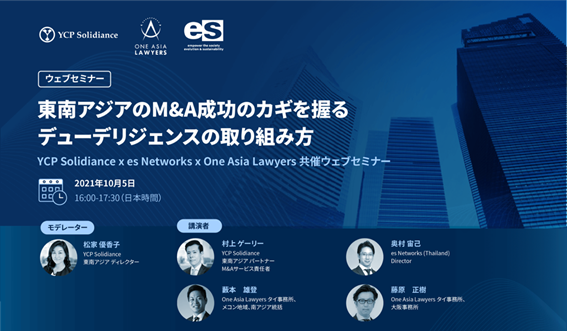 Asia Lawyersとの共催セミナー「東南アジアのM&A成功のカギを握るデューデリジェンスの取り組み方」を実施しました。当社の東南アジアディレクター・松家優香子がモデレーターを務め、当社東南アジアパートナー・M&Aサービス責任者の村上ゲーリー、es