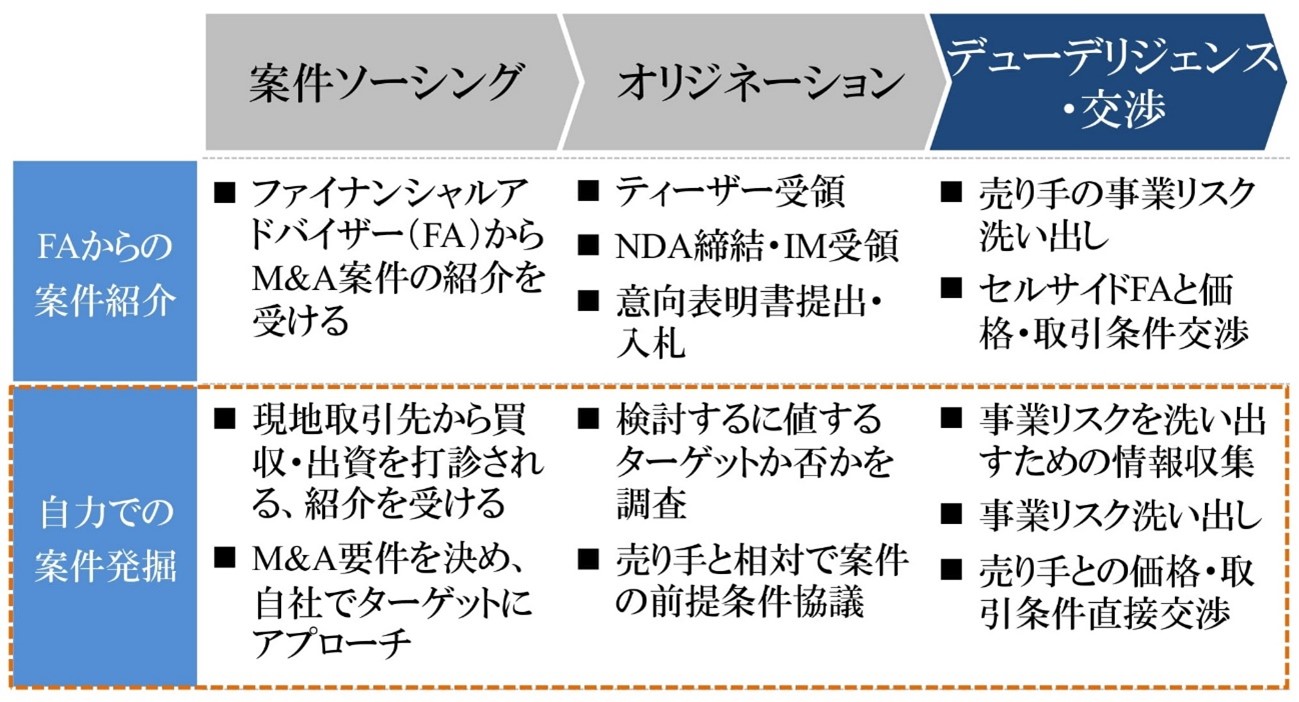 東南アジアでは、「FAからの案件紹介」と「自力での案件発掘」のいずれかのプロセスで案件が生じることが多く、統計上は8割が後者です。売り手側にFAがついていないケースも多いため、相対で交渉ができる部分は魅力ですが、情報を買い手企業自身が取りに行かなければならない点がボトルネックとなる傾向にあります。