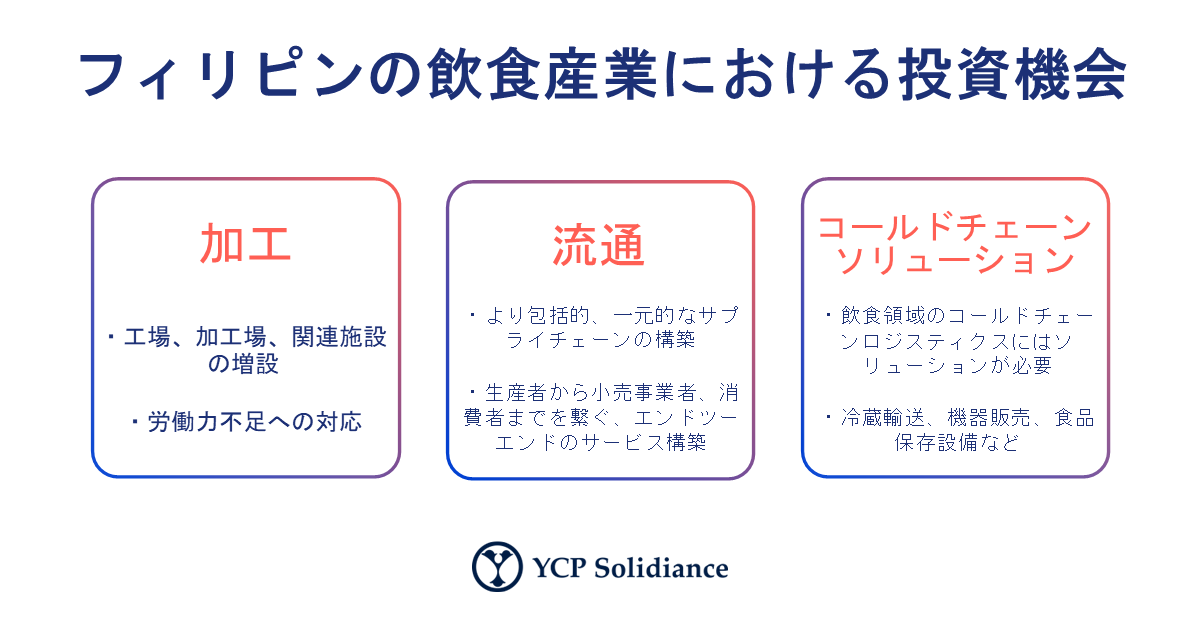 フィリピンの飲食業とその関連分野は多岐にわたり、有望な投資機会が豊富に存在します。