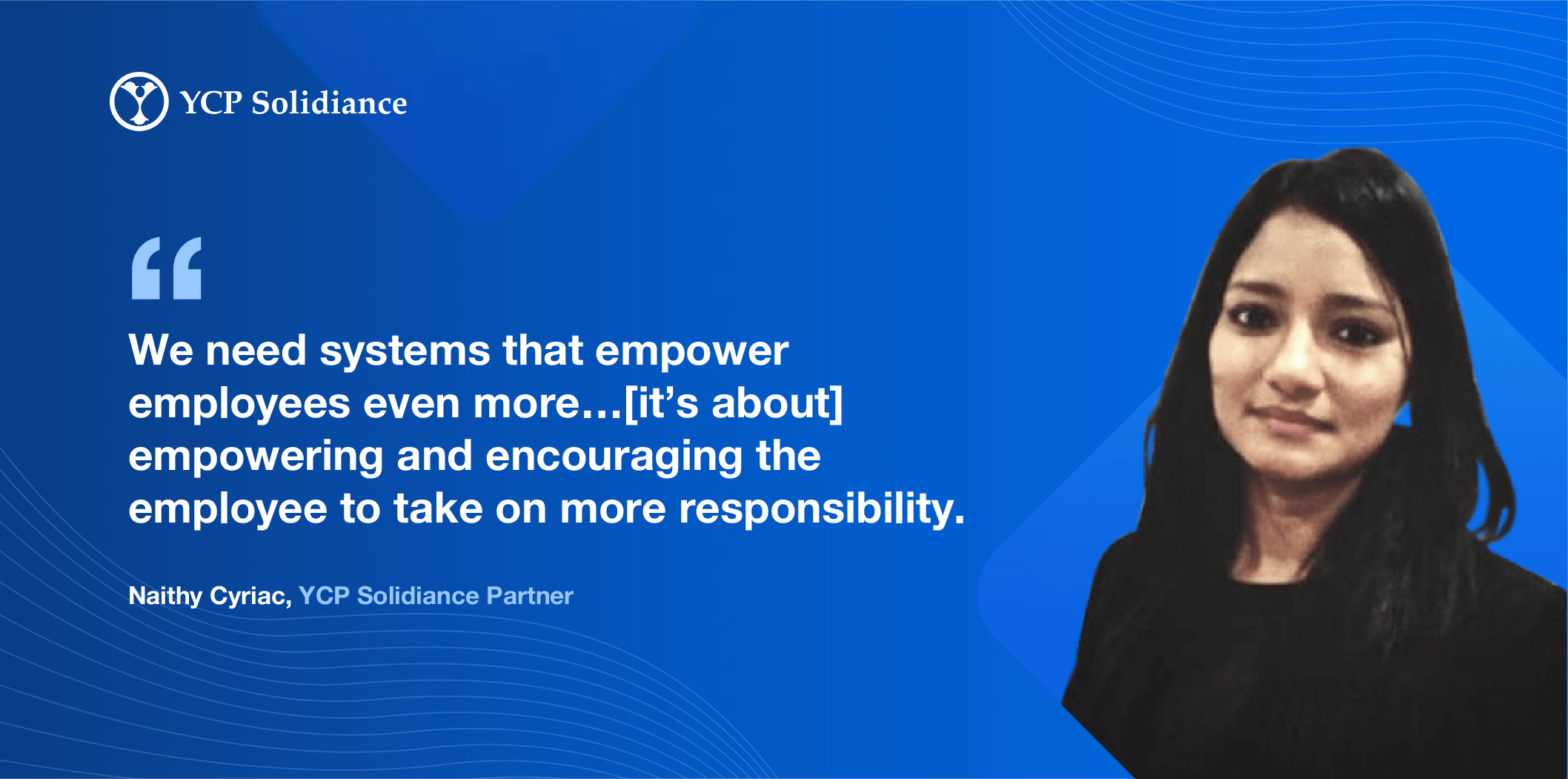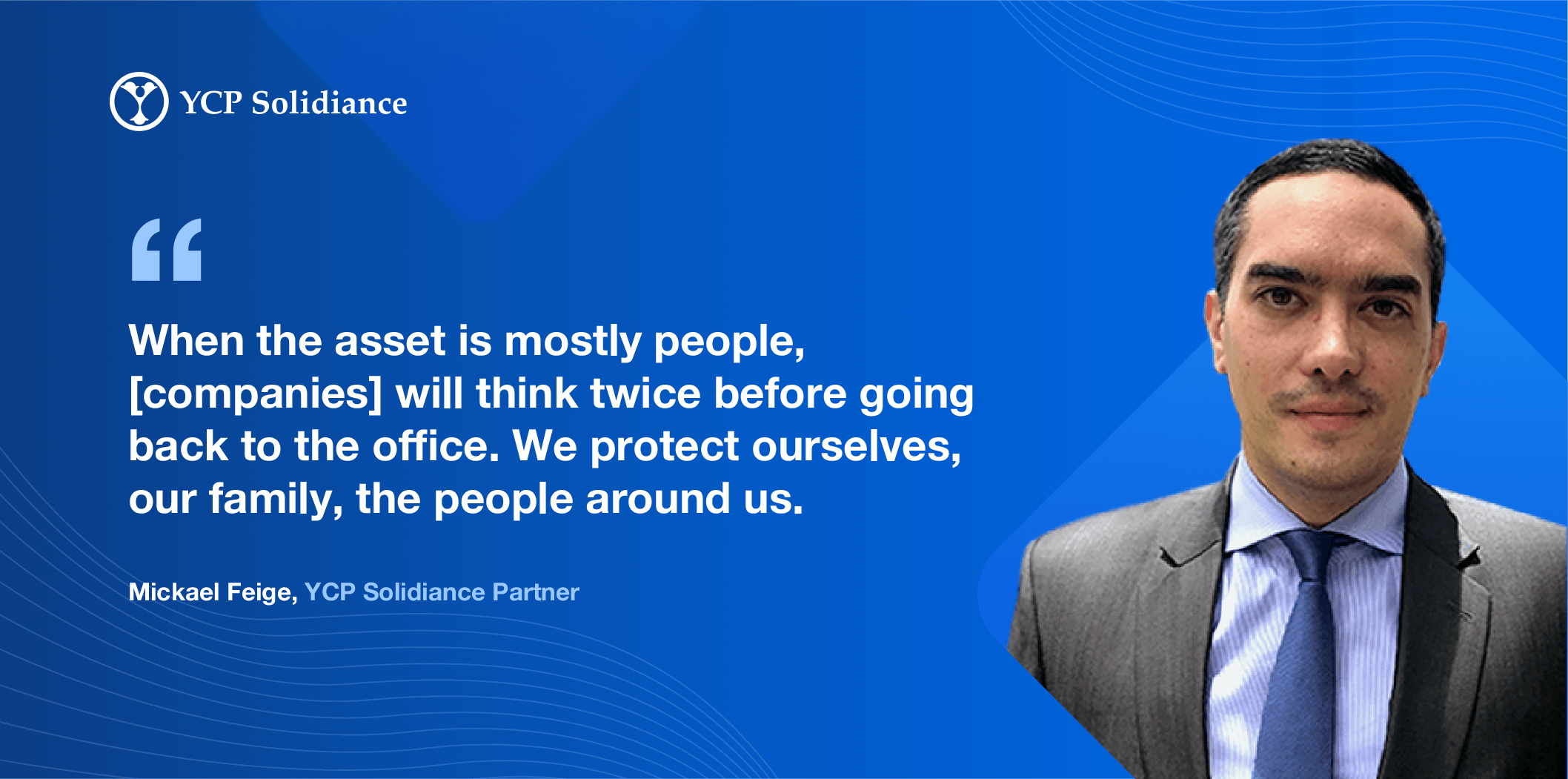 YCP Solidianceのパートナーで、アジアとヨーロッパのクライアントを担当しているNaithy Cyriacは次のように述べています。「人事評価は労働時間で判断されず、過程よりもアウトプットが重視されるようになります。物流や銀行などの伝統的に業務が対面で行われる分野でも、働き方の見直しが加速しています。」